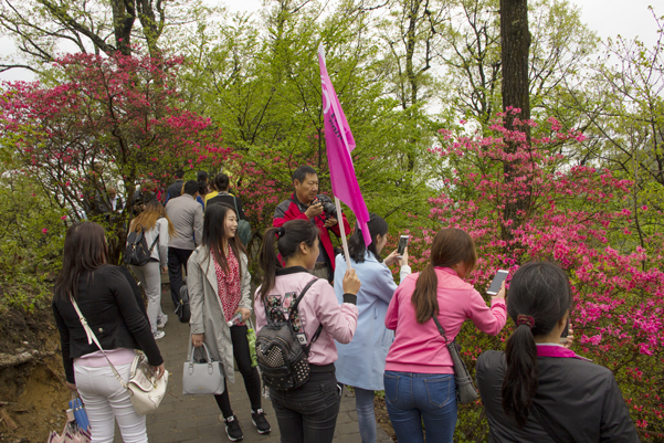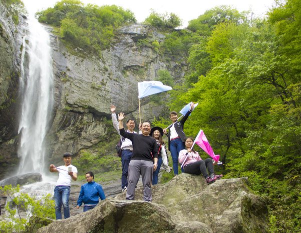 清晨,參加活動的全體人員冒著蒙蒙細雨出發(fā),到達5A級景點——馬鬃嶺風景區(qū),恰好云開霧散,朗朗的好天氣,在一片歡歌笑語中,開始了徒步踏青活動。沿途看到滿山遍野的映山紅,波濤滾滾的嶺上云海,趟過清澈的山澗,觀看飛流直下的瀑布。