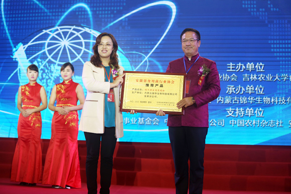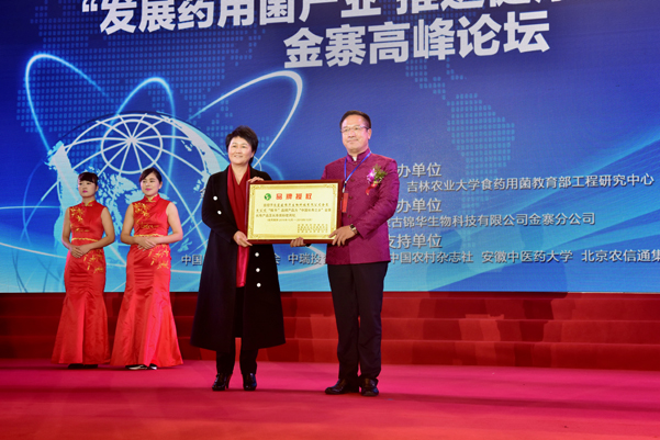 安徽省食用菌行業(yè)協(xié)會(huì)主席常瑩向蘇總授牌