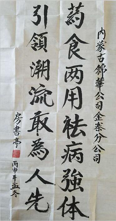 房書亭會長揮毫潑墨,欣然為錦華公司題詞: