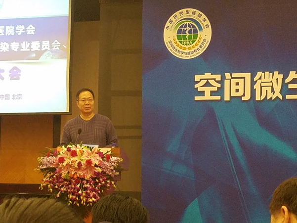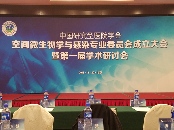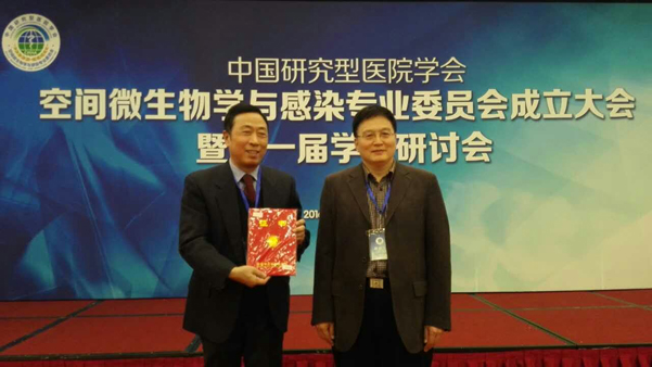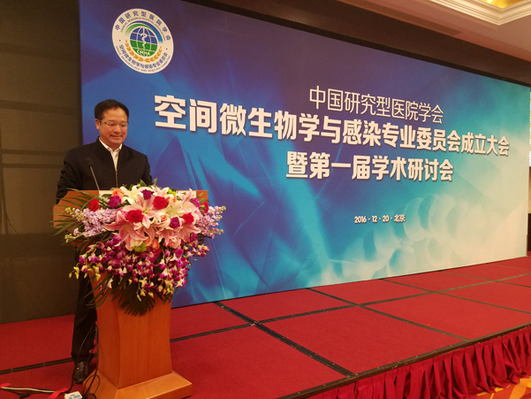 2016年12月20日,在北京長(zhǎng)峰假日酒店,舉行“中國(guó)研究型醫(yī)院學(xué)會(huì)空間微生物與感染專業(yè)委員會(huì)成立大會(huì)暨第一屆學(xué)術(shù)研討會(huì)”,錦華公司蘇總參加大會(huì),并當(dāng)選為“空間微生物學(xué)與感染專業(yè)委員會(huì)委員,劉長(zhǎng)庭將軍親自為蘇總頒發(fā)證書。蘇總在第一屆學(xué)術(shù)會(huì)上講話。