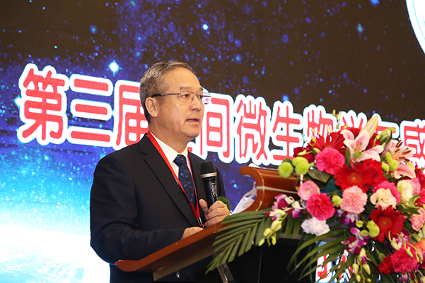 空間微生物學(xué)與感染專業(yè)委員會常委、本次大會組委會主席、內(nèi)蒙古錦華公司總經(jīng)理蘇振泉致辭。他說,錦華公司是軍民融合、轉(zhuǎn)化應(yīng)用的最大受益者。今年,我公司研制的產(chǎn)品“食用菌精粉”已暢銷全國二十幾個地區(qū)。相信,在各位專家的支持下,錦華公司還將在微生物營養(yǎng)方面繼續(xù)探索下去。