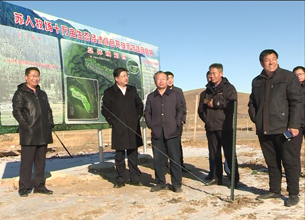 11月29日,參加全縣重點項目建設和重點工作現(xiàn)場觀摩拉練會的70多名縣處級領導、各委辦局負責人、鄉(xiāng)鎮(zhèn)街道黨政正職等領導蒞臨新林鎮(zhèn)“蘇人牧場十萬畝生態(tài)經(jīng)濟試驗示范項目”工地指導工作。