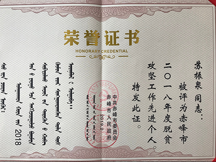 2019年3月,內(nèi)蒙古赤峰市委、市政府表彰了2018年度51個全市脫貧攻堅先進集體和152名先進個人,內(nèi)蒙古錦華集團公司蘇振泉總經(jīng)理獲“脫貧攻堅先進個人”榮譽。