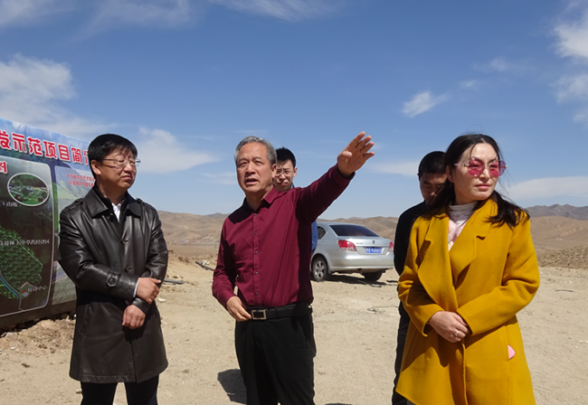 林西縣委副書記周井民(左一)到植樹現(xiàn)場(chǎng)調(diào)研