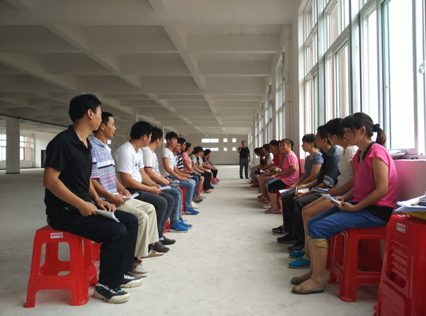 從7月18日起,第一批被錄用的40名工人參加為期兩周的崗前培訓,分軍訓、技能培訓及紀律和法律培訓